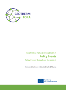 This deliverable puts together all policy events with impactful participation/organisation that happened during the duration of the Geotherm FORA project,…